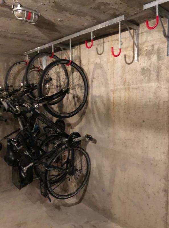 Izmenična postavitev kljuk nizko / visoko, prevlečene z rdečo plastično prevleko za zaščito platišč koles.