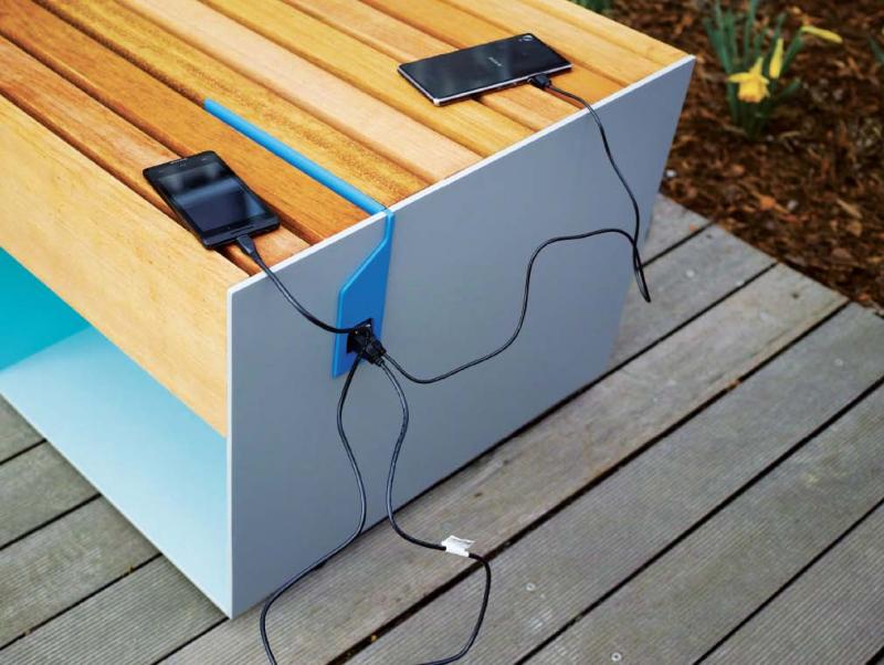 Sedalna površina in hrbtni naslon iz lesenih letev.