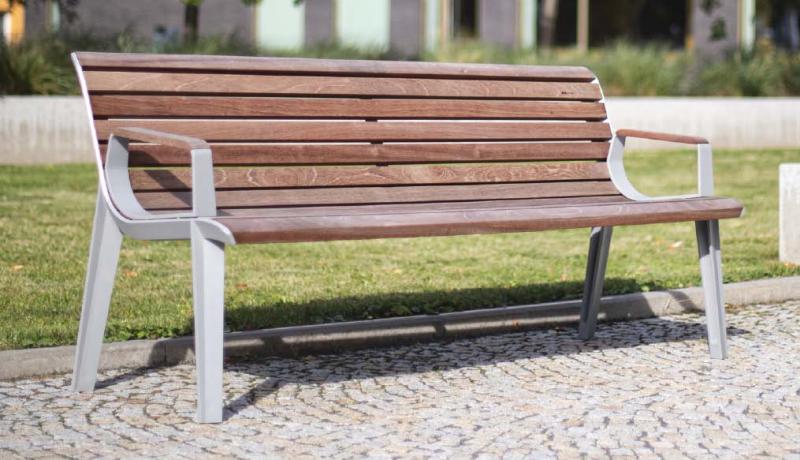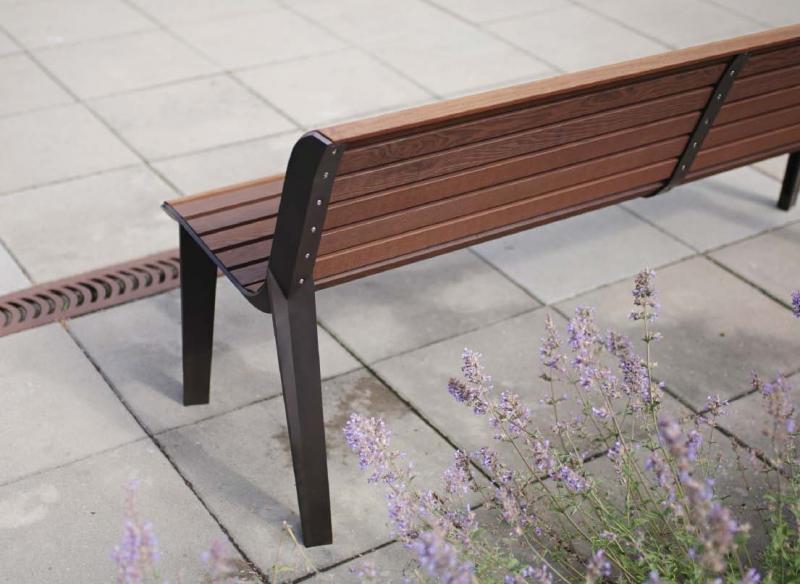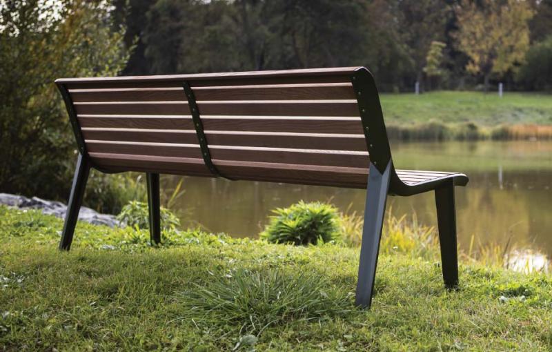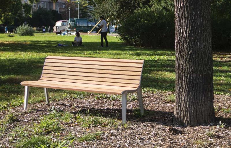 Sedalna površina in hrbtni naslon iz lesenih letev.