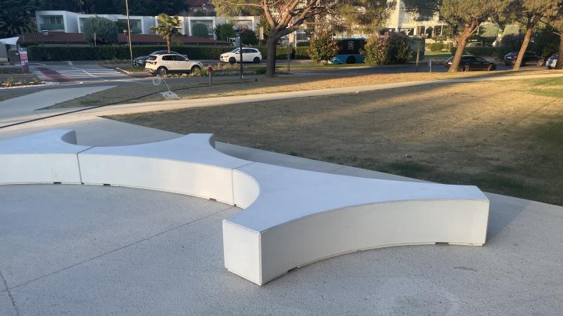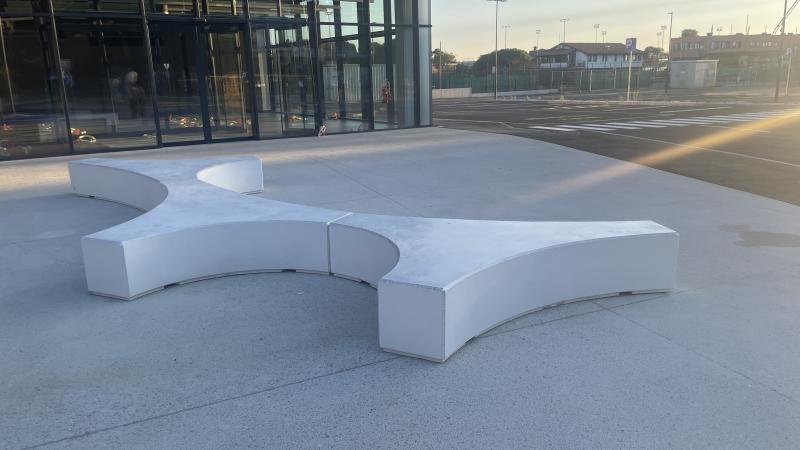 Konstrukcija: Klop iz vidnega betona z različnimi premazi. Vsi robovi so zaobljeni. Površina / barva: S prozornim premazom, odpornim na vodo in vremenske vplive.