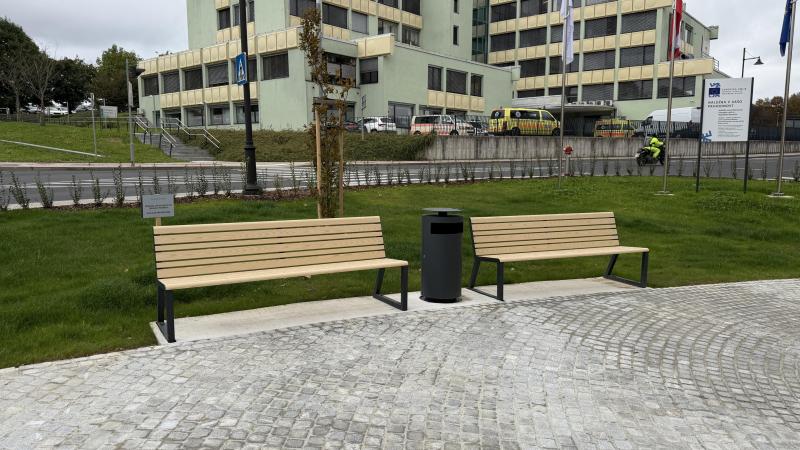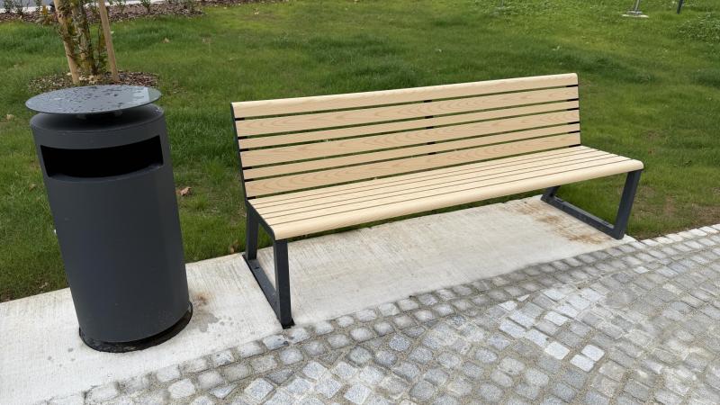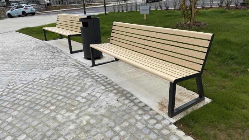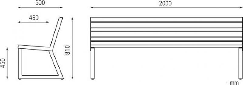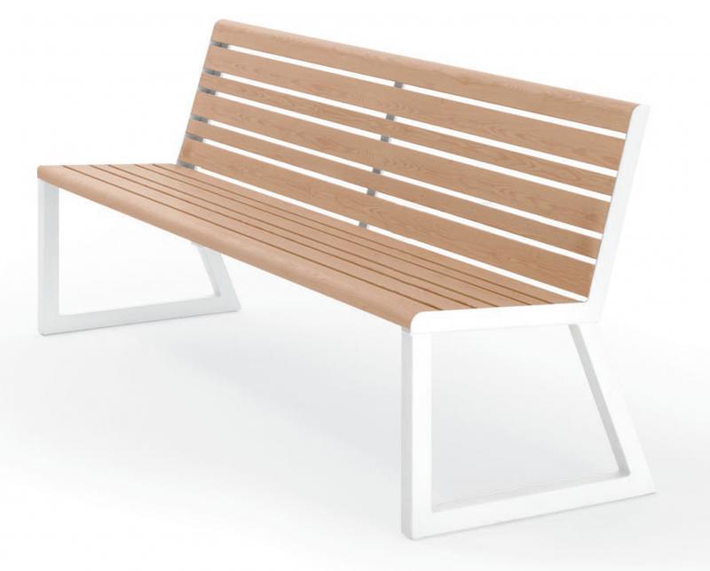 Sedalni del in hrbtni naslon iz aluminijastih letev v imitaciji lesa.