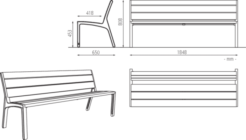 Sedalna površina in hrbtni naslon iz lesenih letev.