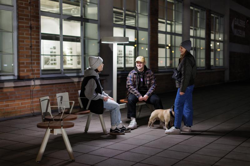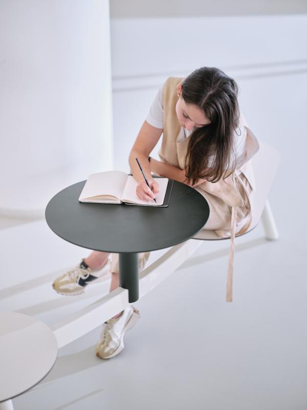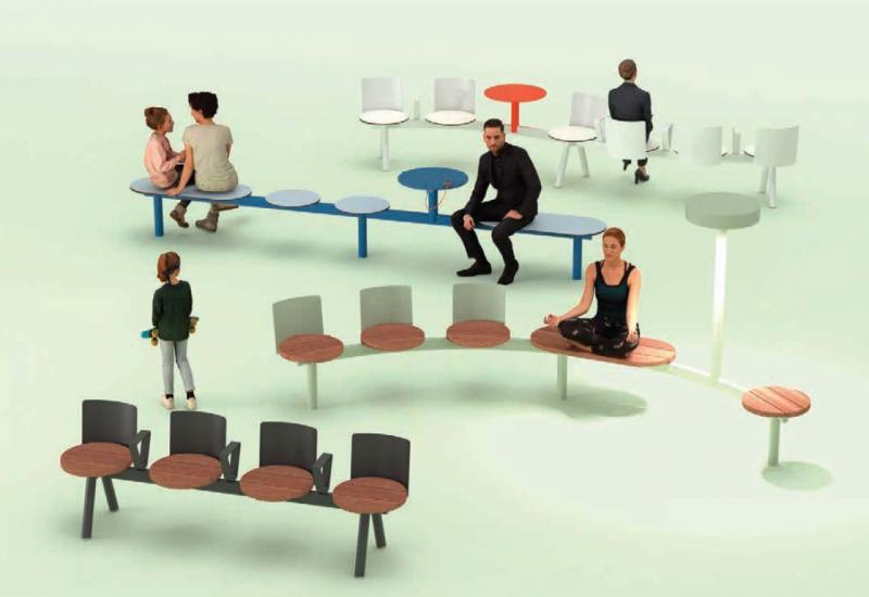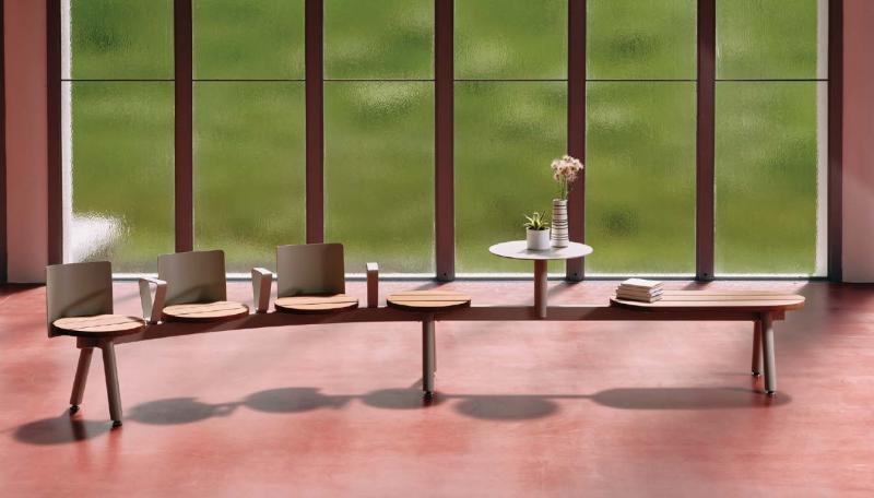 Hrbtni naslon, rokonasloni in miza iz jeklene pločevine. Dobavljivo tudi z USB priključki.