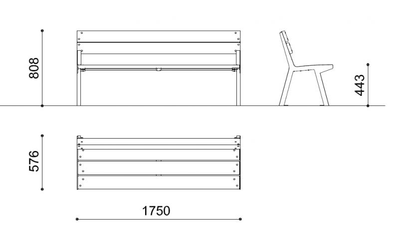 Sedalna površina in hrbtni naslon iz lesenih letev.