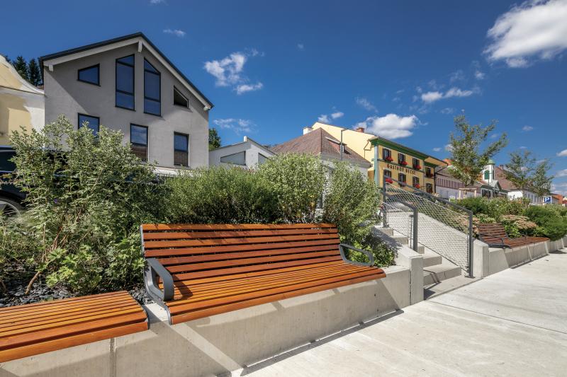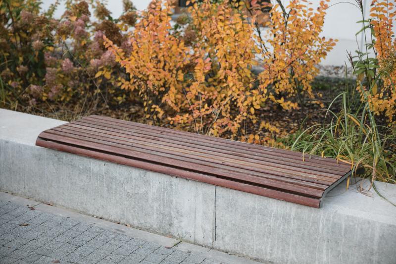 Sedalna površina in hrbtni naslon iz lesenih letev.