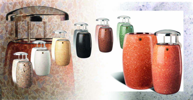 Koš iz betona - bel granit, marmor.