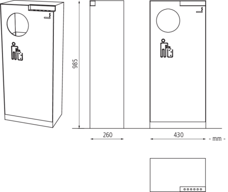 Prednja stena se sprosti s tri-kotnim ključem, praznenje notranje cinkane posode ki je snemljiva.
