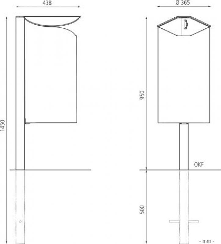 Izvedba s stebrom za vgrajevanje v betonski temelj, vgrdna globina -500 mm.
