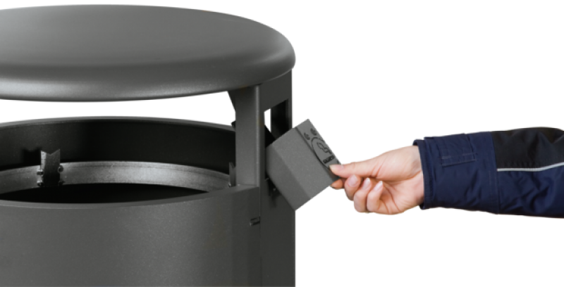 Iz jeklene pločevine. Pepelnik iz nerjavne pločevine.