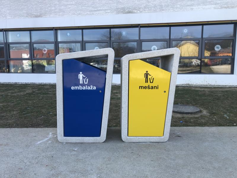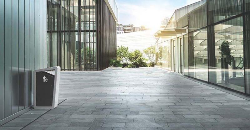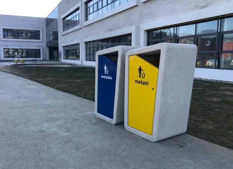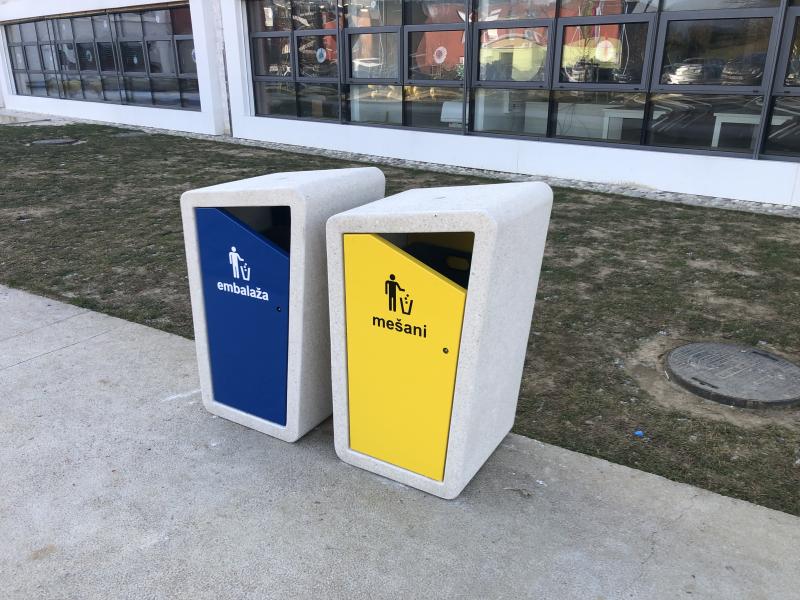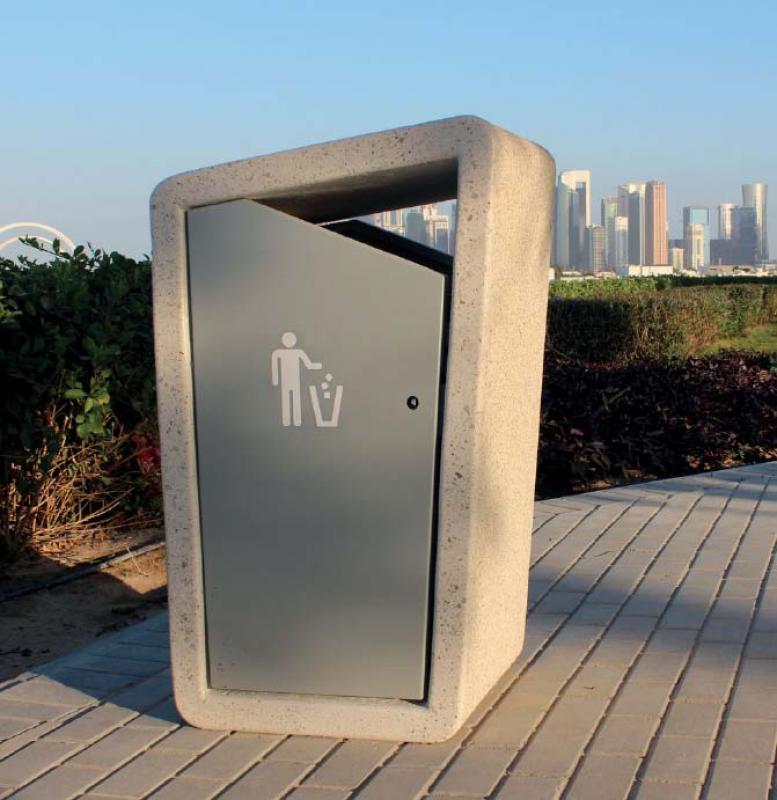 Monolitni betonski / teraco element. Prednja vrata in zadnja stran iz jeklene pločevine.