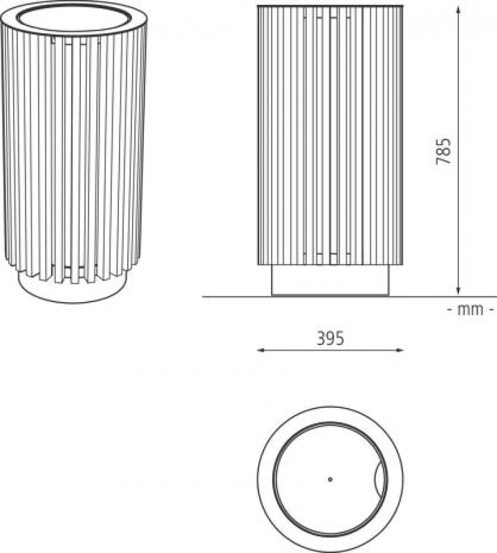 Konstrukcija koša v jekleni pločevini in aluminiju, z lesenimi letvami.