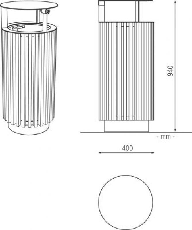 Konstrukcija koša v jekleni pločevini in aluminiju, z lesenimi letvami.