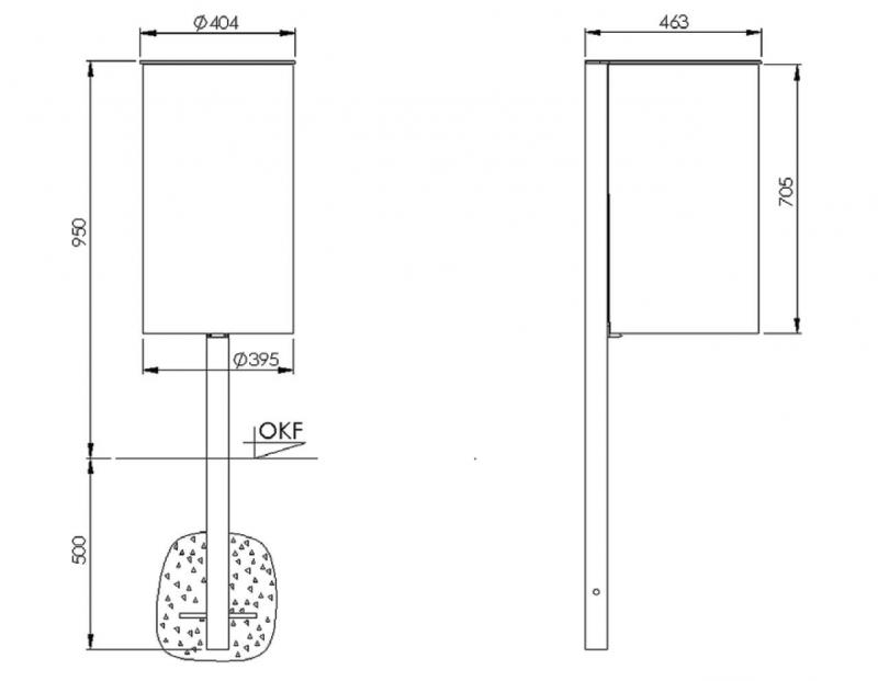 Izvedba s stebrom za vgrajevanje v betonski temelj. Vgradna globina -500 mm.