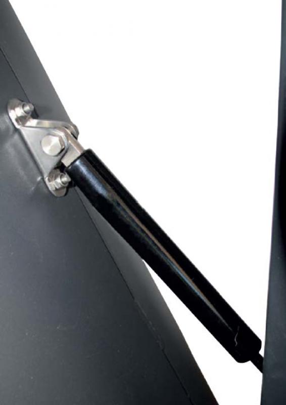 Odklepanje in kipanje korpusa naprej. Plinski cilinder.