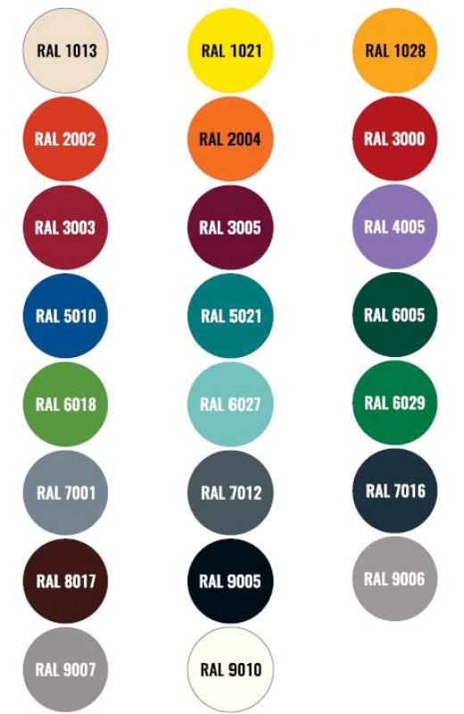 Vsi jekleni deli vroče cinkani in prašno barvani v standardnih RAL barvah.