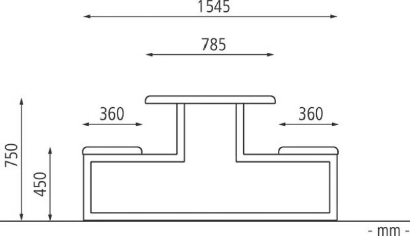 Sedalni del in površina mize iz aluminijastih letev v imitaciji lesa.
