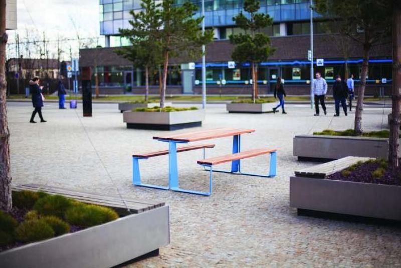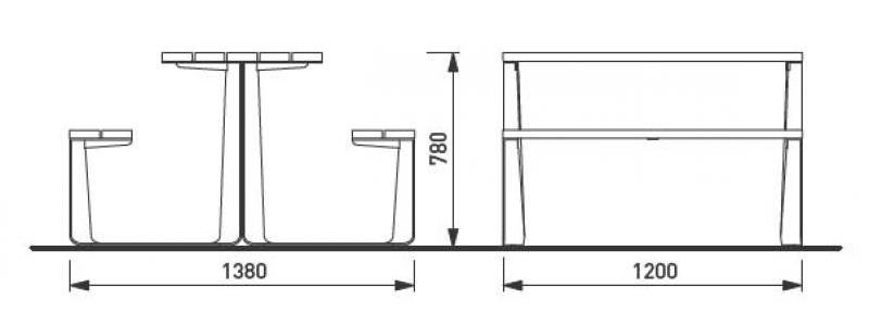 Miza in klopi iz jeklene pločevine.