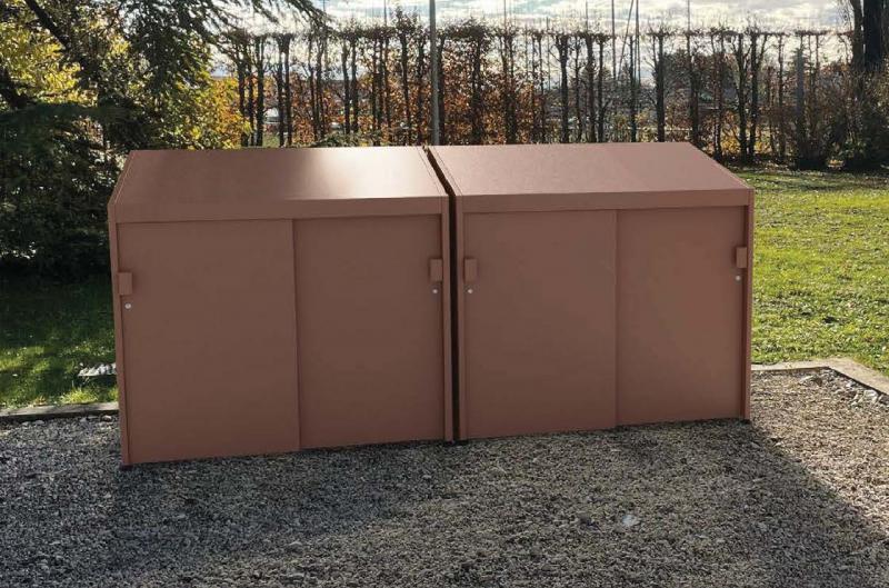Zabojnika z okvirjem iz jeklene pločevine, s poševnim pokrovom, ki preprečuje odlaganje odpadkov in drsna vrata iz jeklene pločevine. Različica CLEAN 150 lahko sprejme do dva 120 ali 240 litrska zabojnika. Vsi kovinski deli so pocinkani in prašno barvani. Vse pritrditve so iz nerjavečega jekla. Pripravljen z nastavljivimi izravnalnimi nogami, ki se lahko uporabljajo samostoječe ali so pritrjeni na primeren tlak.