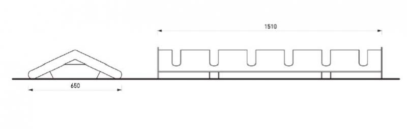 Stojalo za 3-4 kolesa enostransko, za 6 koles dvostransko. Iz jekelne pločevine.