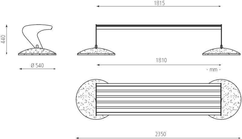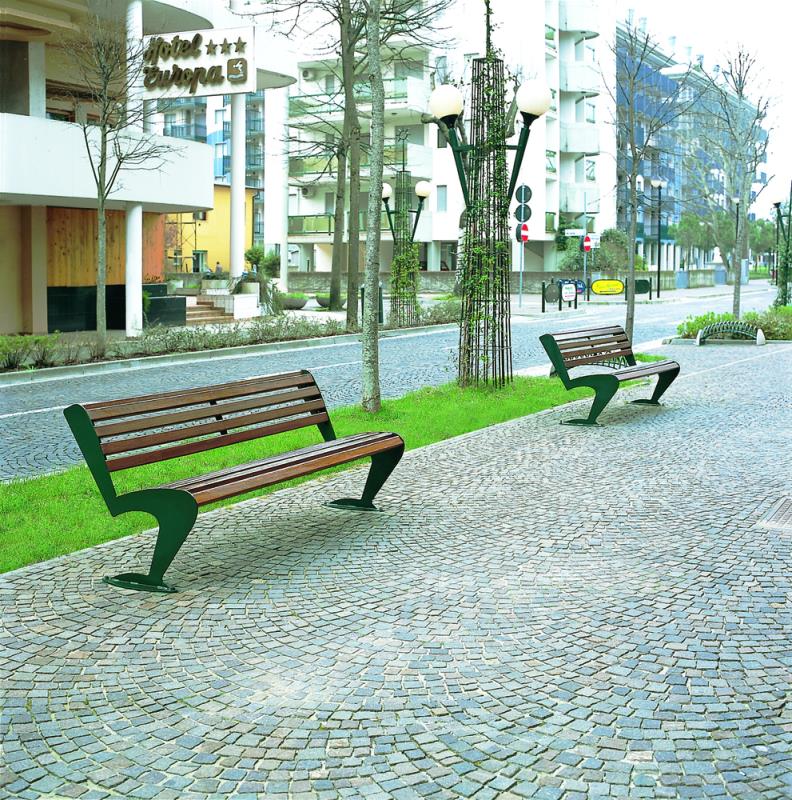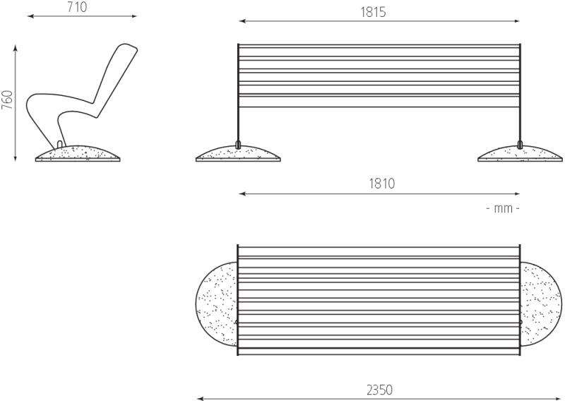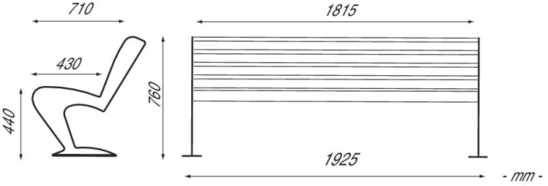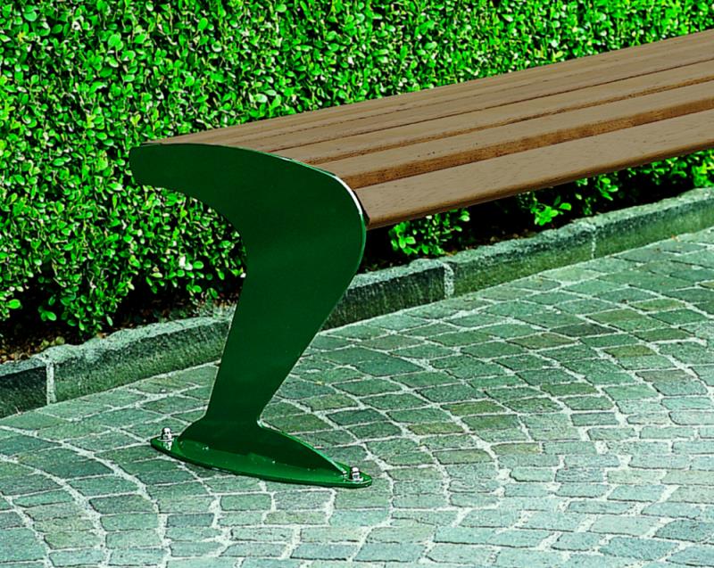 Stranice iz jeklene plocevine. Sedalo z lesenimi letvami. Vsi jekleni deli vroce cinkani in prašno barvani. Lesene letve tlacno impregnirane in lakirane z UV obstojnim lakom. Sidrni vijaki vkljuceni v dobavo. Ob dobavi razstavljeno na paleti, pripravljeno za montažo.