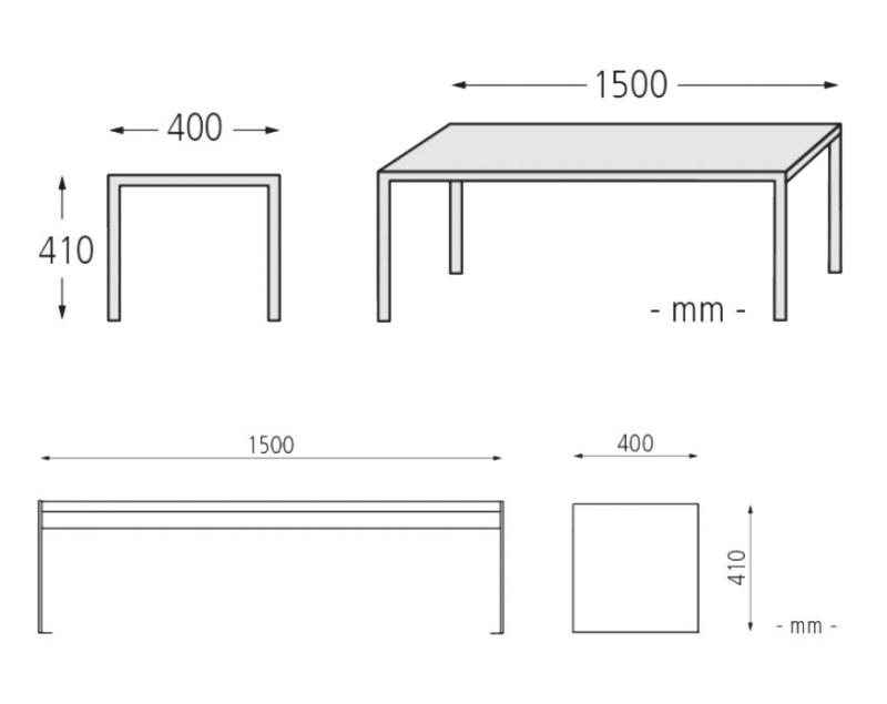Klop s stranskimi deli iz jeklene plocevine, debelina 8 mm. Sedalo in hrbtni naslon iz lesenih letev.