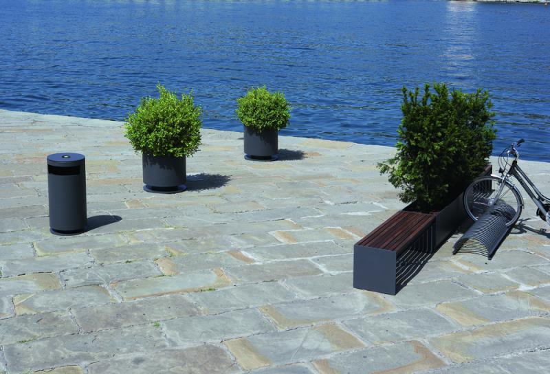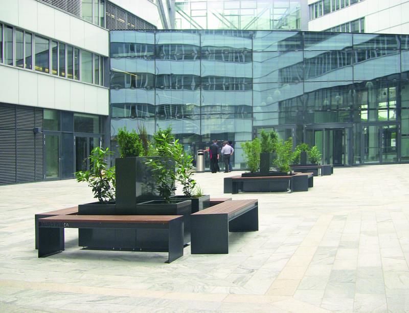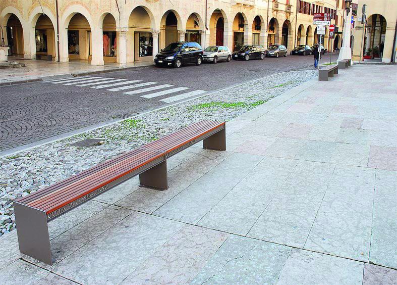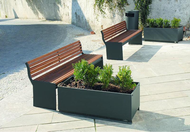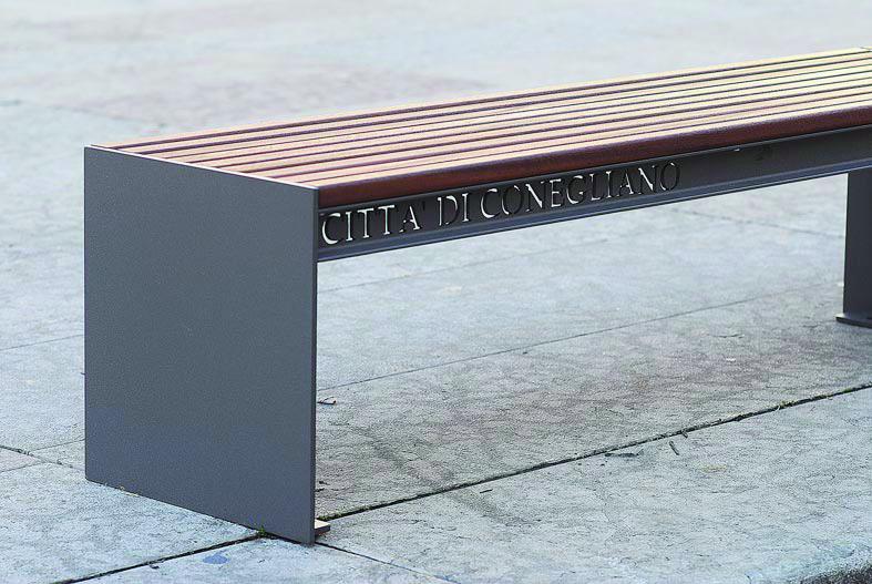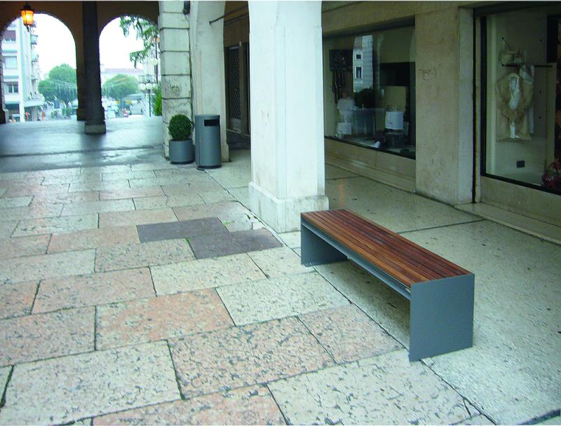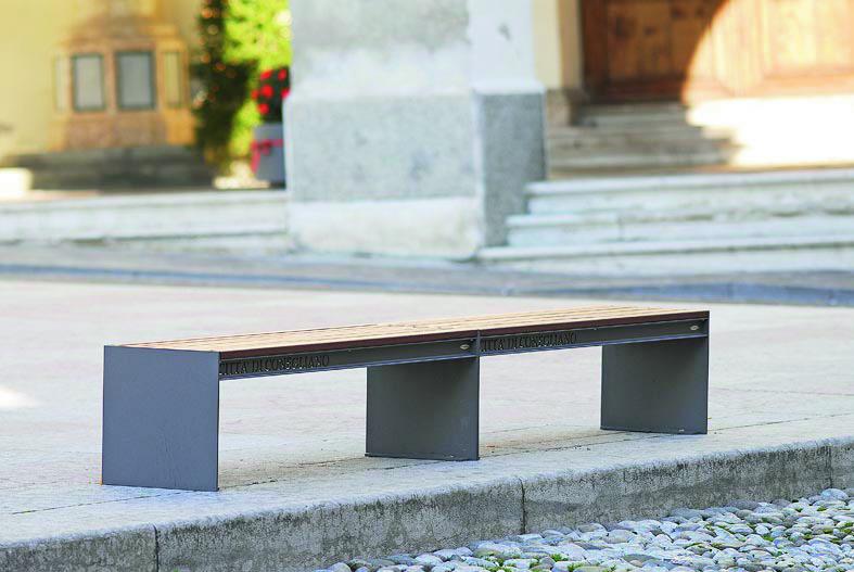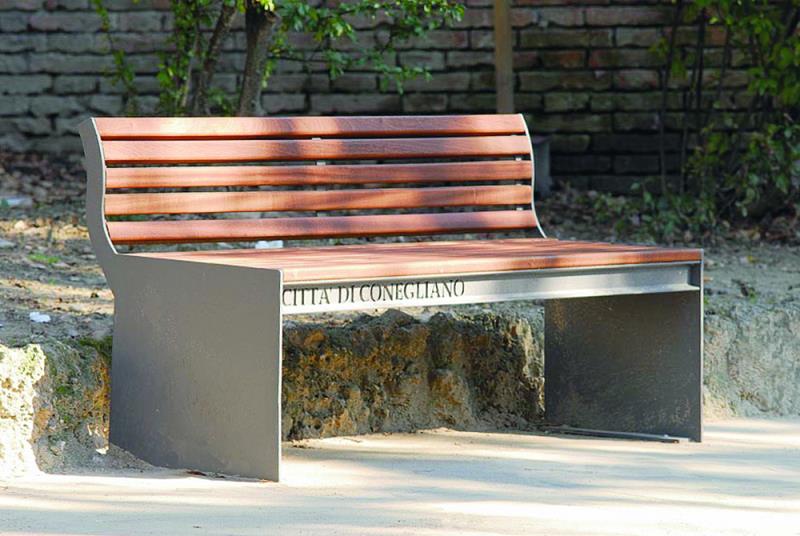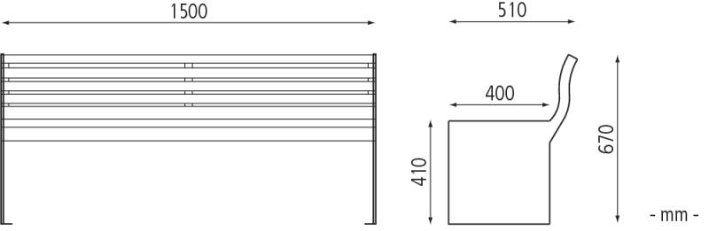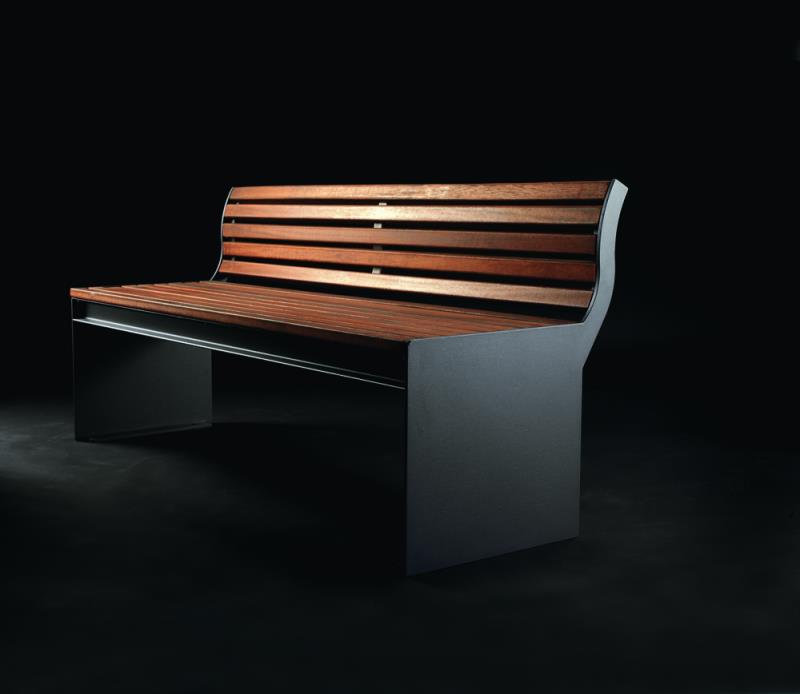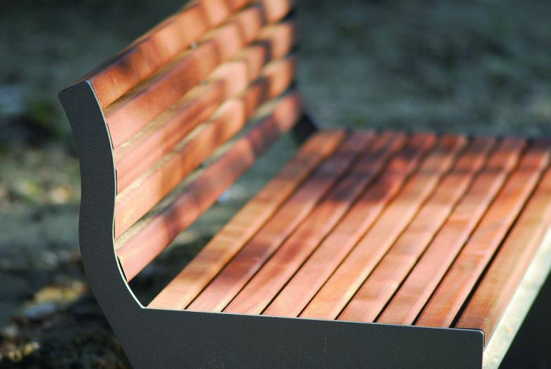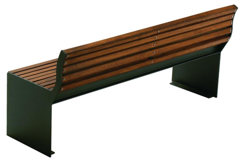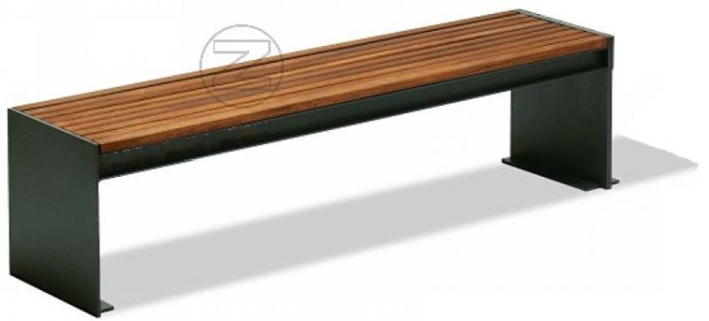 Klop s stranskimi deli iz jeklene plocevine, debelina 8 mm. Sedalo in hrbtni naslon iz lesenih letev.