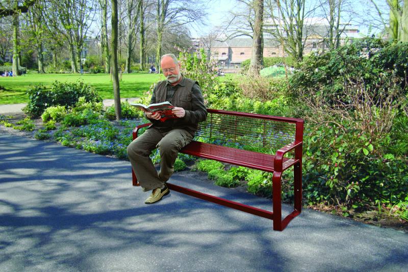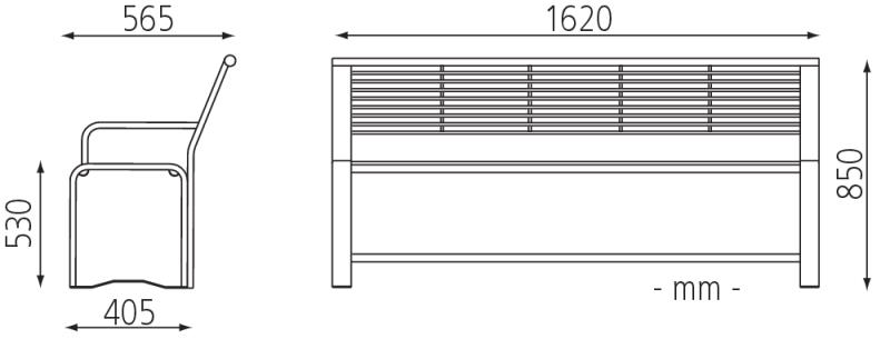 Naslon za roke izdelan iz jeklenih C - profilov 20 x 60 x 20 mm. Sedalo in hrbtni naslon lepo oblikovana in izdelana iz kovinske mreže okrogli profil 8 mm. Noge so izdelane iz jeklenih ovalnih profilov. Vsi jekleni deli vroce cinkani in prašno barvani. Dobava: razstavljeno na paleti, pripravljeno na montažo.