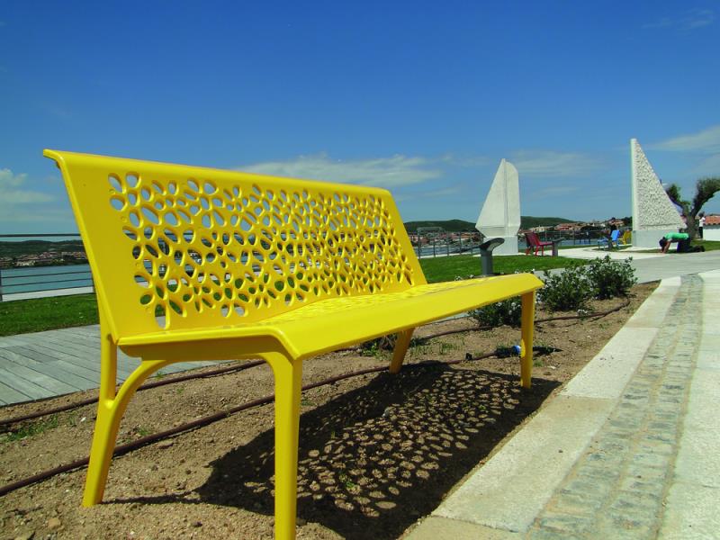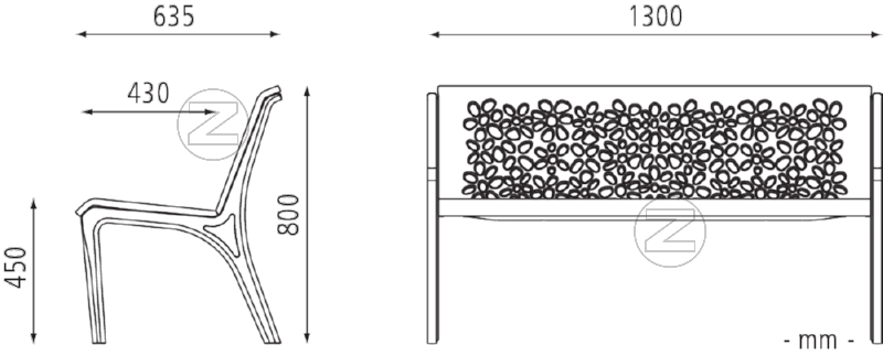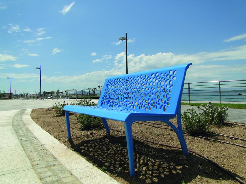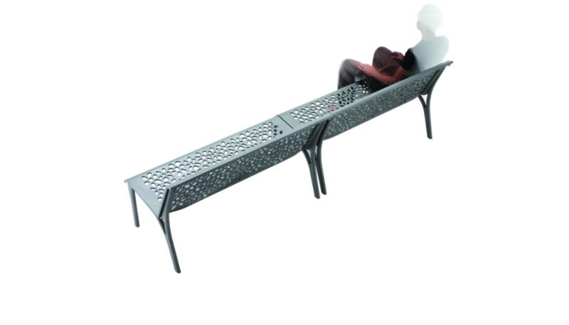 Klop v celoti iz litega aluminija z ulitim cvetličnim vzorcem.