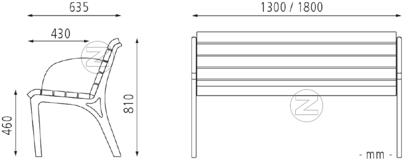 Sedalna površina in hrbtni naslon iz lesenih letev.