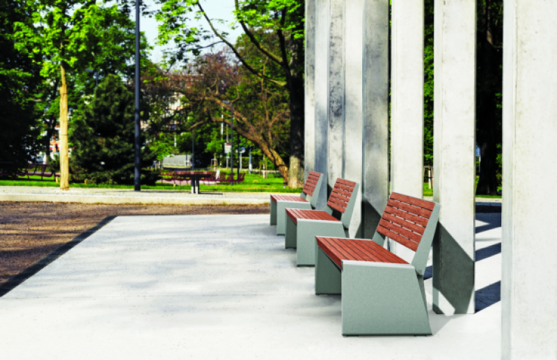 Sedalna površina in hrbtni naslon iz lesenih letev.