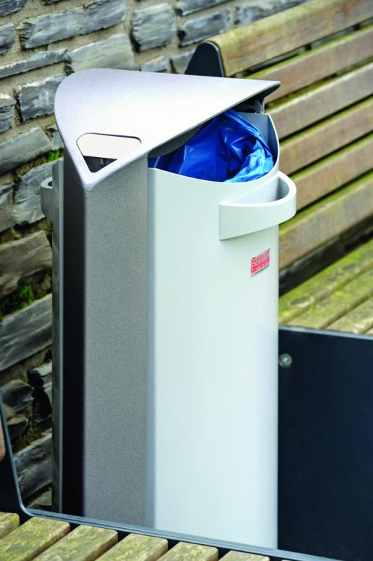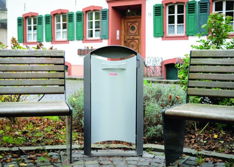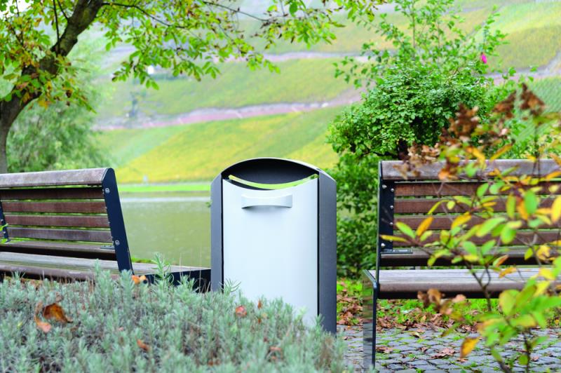 Koš brez odtocnih lukenj na dnu. Aluminij, lakiran; jeklo vroce cinkano in lakirano. Vzdrževanje / praznjenje: posoda se s pomocjo trikotnega kljuca sprosti iz okvirja. Pri ponovni postavitvi pa se sam zaskoci. Dobava vkljucuje 1 trikotni kljuc. Vgradna globina 300 mm.