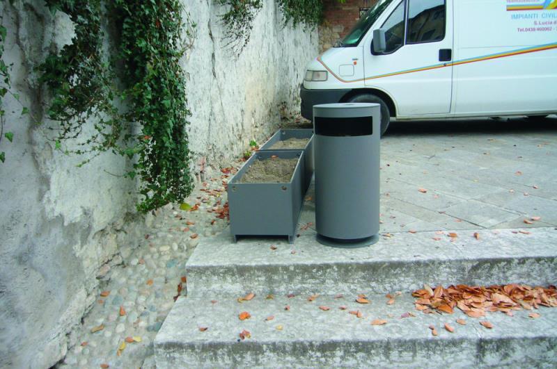 Iz jeklene pločevine z vdelanim pepelnikom iz nerjavnega jekla. Dobava vključuje notranjo posodo za odpadke.