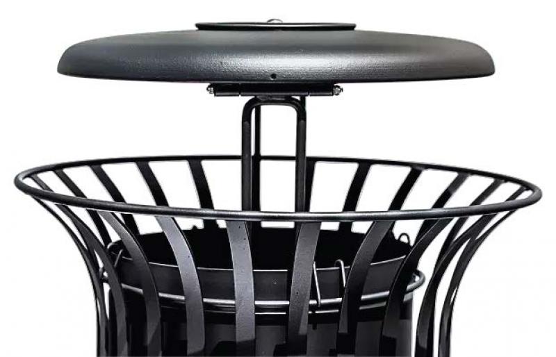 Brez zaklepa. Z verigo zavarovano držalo za vreče, za praznjenje je potrebno odstraniti posodo.
