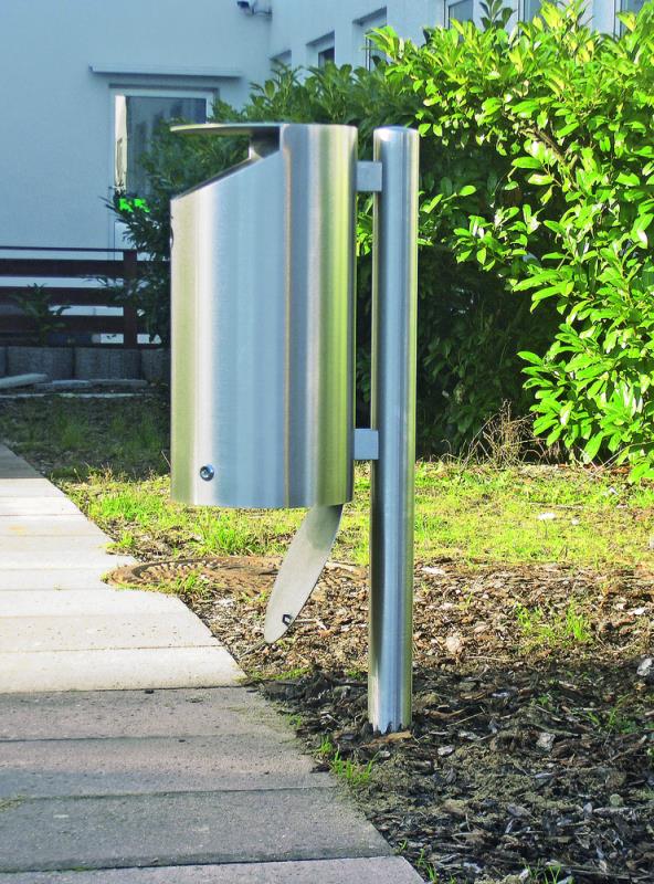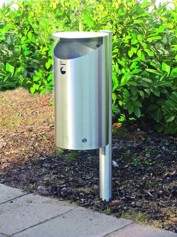 Iz V2A - legiranega jekla, debeline 2 mm. Z vgraviranim piktogramom " cigarete " nad odprtino pepelnika. Vzdrževanje / praznjenje: za praznjenje koša in pepelnika je potrebno odpreti talni pokrov s trikotnim kljucem. Dobava vkljucuje en trikotni kljuc. Material za pritrjevanje na steno ni vkljucen v dobavo.