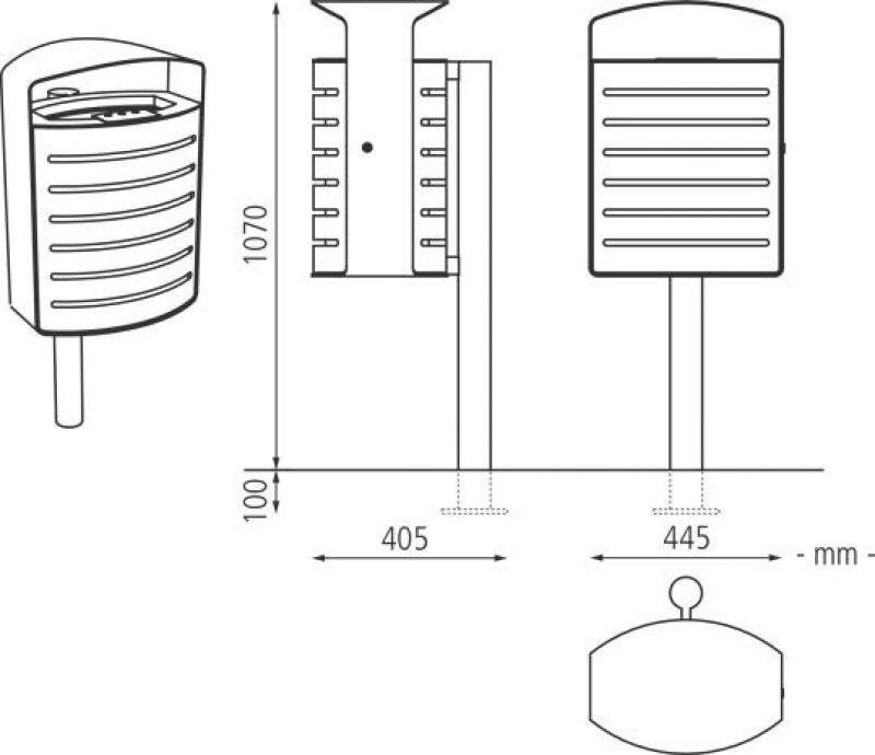 V celoti jeklena konstrukcija, zaščitna strehica, s ali brez pepelnika. Z notranjo cinkano posodo.