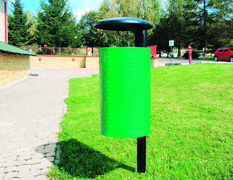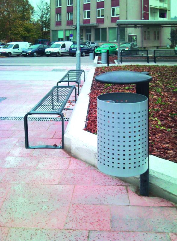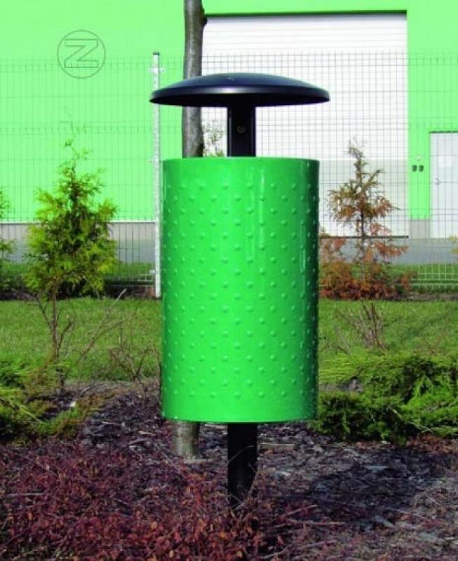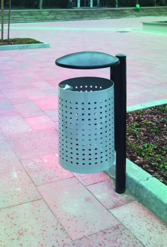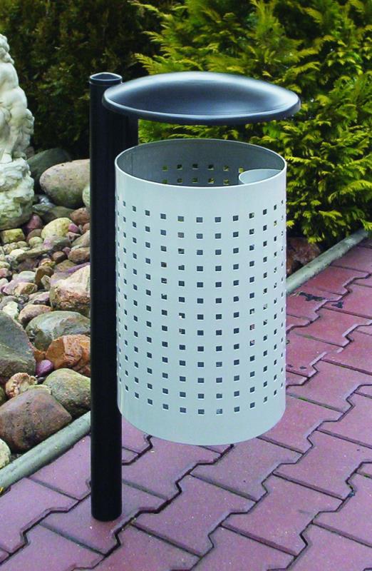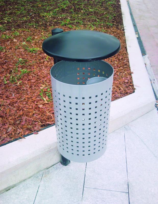 Koš za odpadke iz jeklene pločevine, perforiran ali z izboklinami.