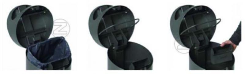 Praznenje s trikotnim ključem sprostimo zgornji pokrov, snamemo in izpraznimo/zamenjamo vrečo, ter izpraznimo pepelnik