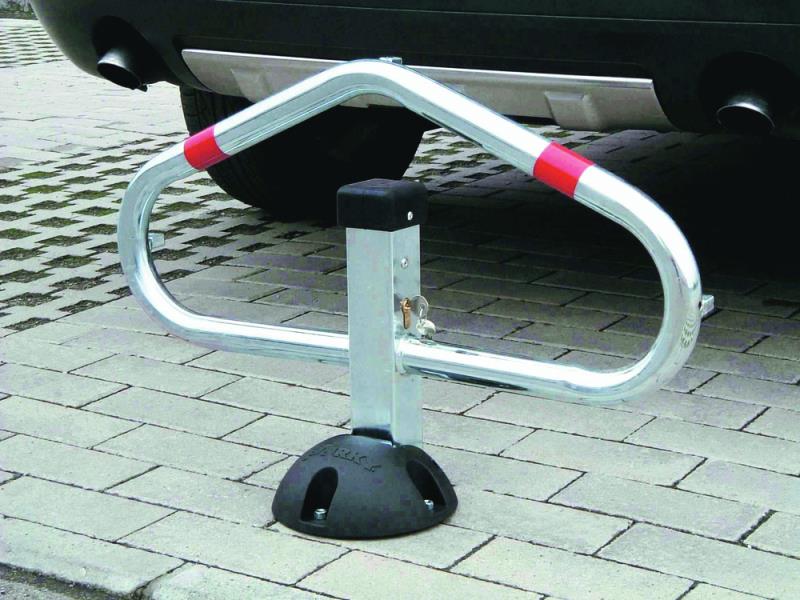 Parkirna zapora iz jekla, cevni profil premera 40 mm, zaščita iz umetne mase (poliamid), ki šciti gume pri naletu.