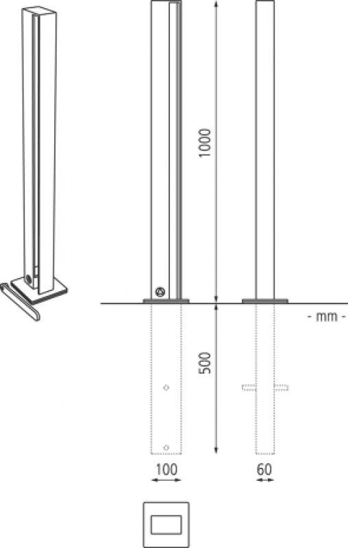 Za vbetoniranje (vgradna globina: 500 mm) snemljiv stebriček iz talnega tulca.