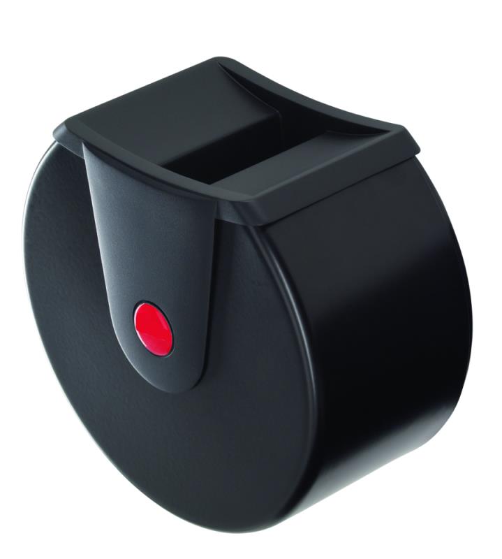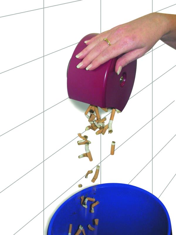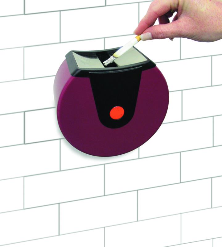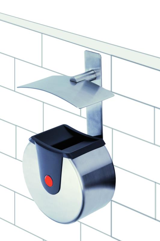 Stenski pepelnik iz V2A - legiranega jekla s pokrovom iz grafitno crne umetne mase. Dobava vkljucno s stenskim pritrditvenim materialom.