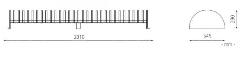 Stojalo za kolesa brezz betonskega podstavka, s stranskimi držali za pritrjevanje v tla s sidrnimi vijaki. Držalo je povezano z dvema ovalnima jeklenima profiloma. Parkirna površina je sestavljena iz polkrožnih zakrivljenih profilov. Primerno za eno ali dvostransko parkiranje koles.