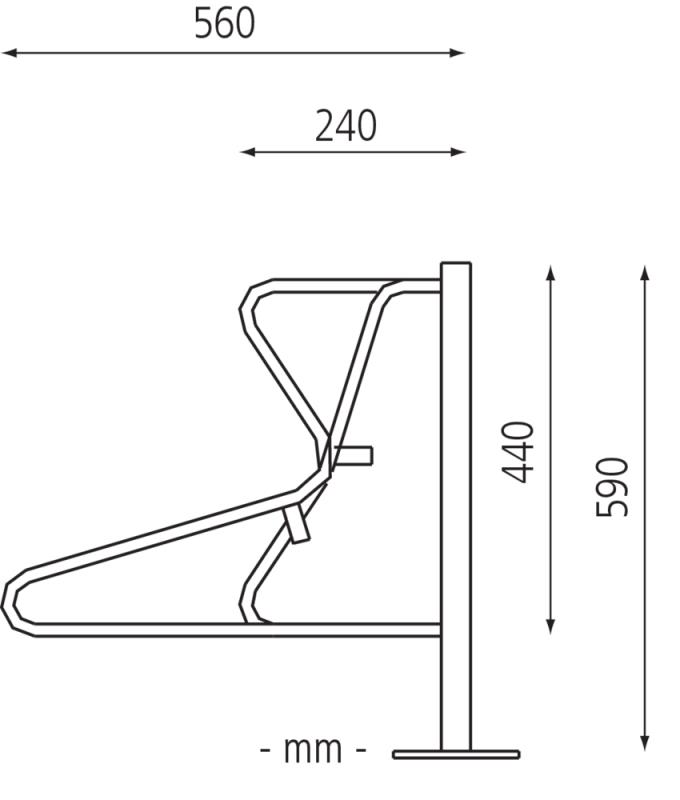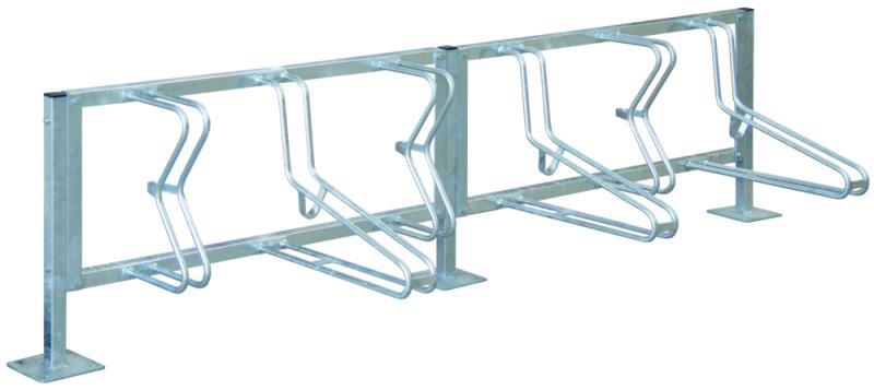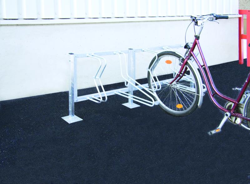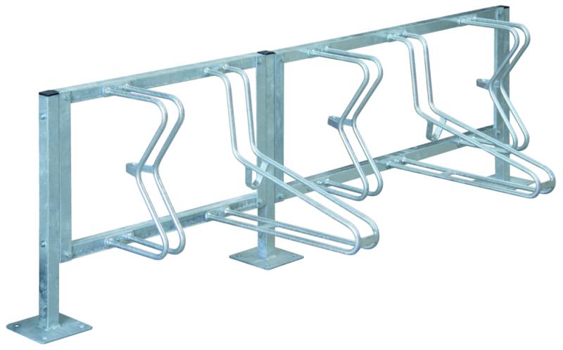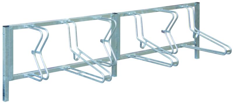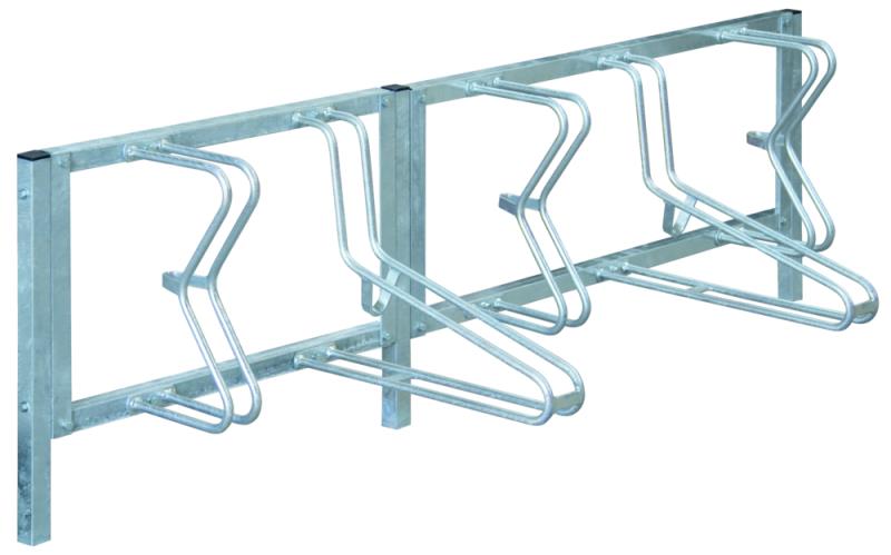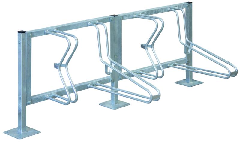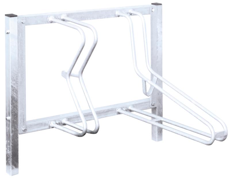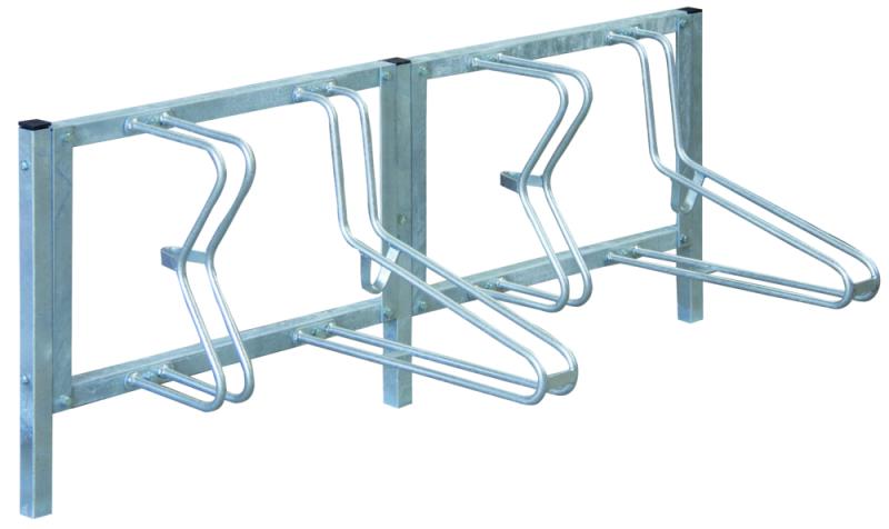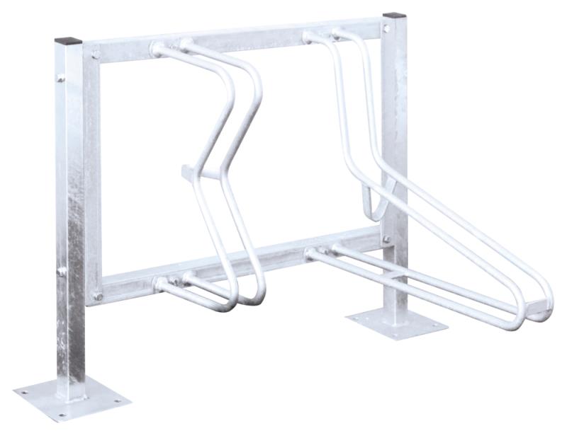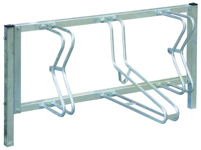 Osnovni okvir iz jekla, kvadratni cevni profil 35 x 35 mm. Držala iz okrogle cevi premer 15 mm. Kot postavite 90 stopinj. Nizka postavitev za kolesa s širino 43 mm, visoka postavitev primerna za gorska kolesa s širino 53 mm. Razmak med kolesi 350 mm. Ob dobavi razstavljeno, sestavljeno iz treh enot. Dobava vkljucuje vijake za pritrditev držal na nosilni okvir.