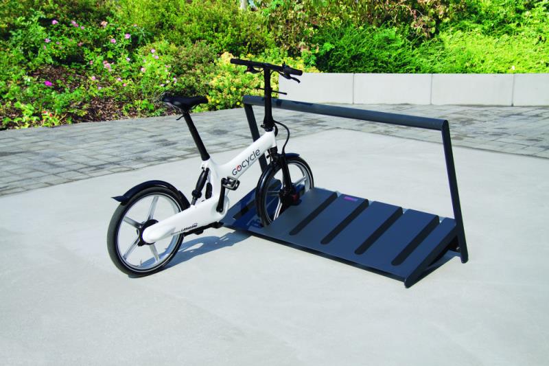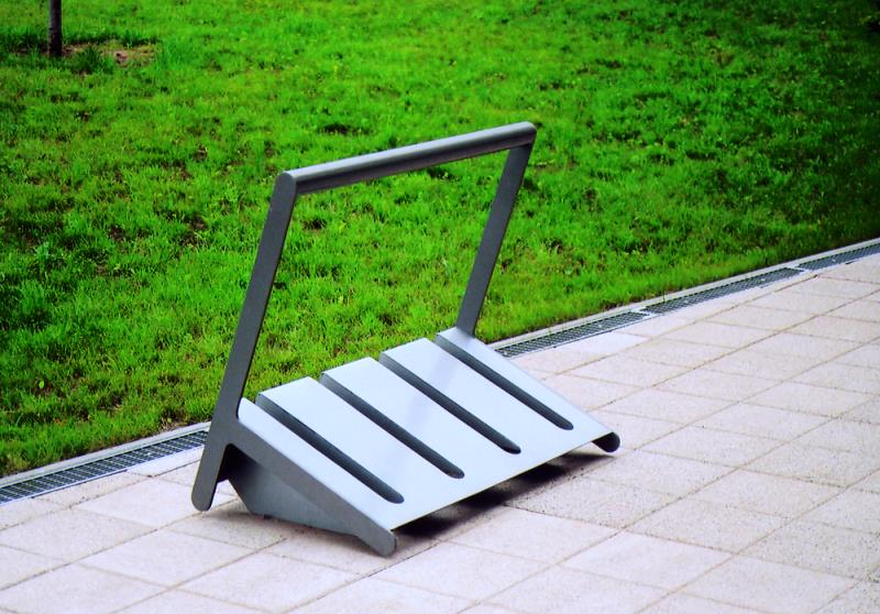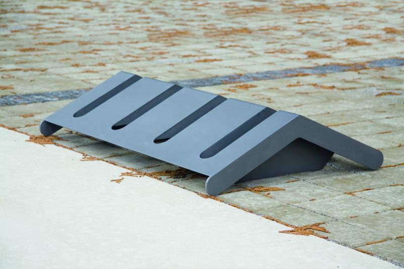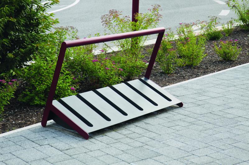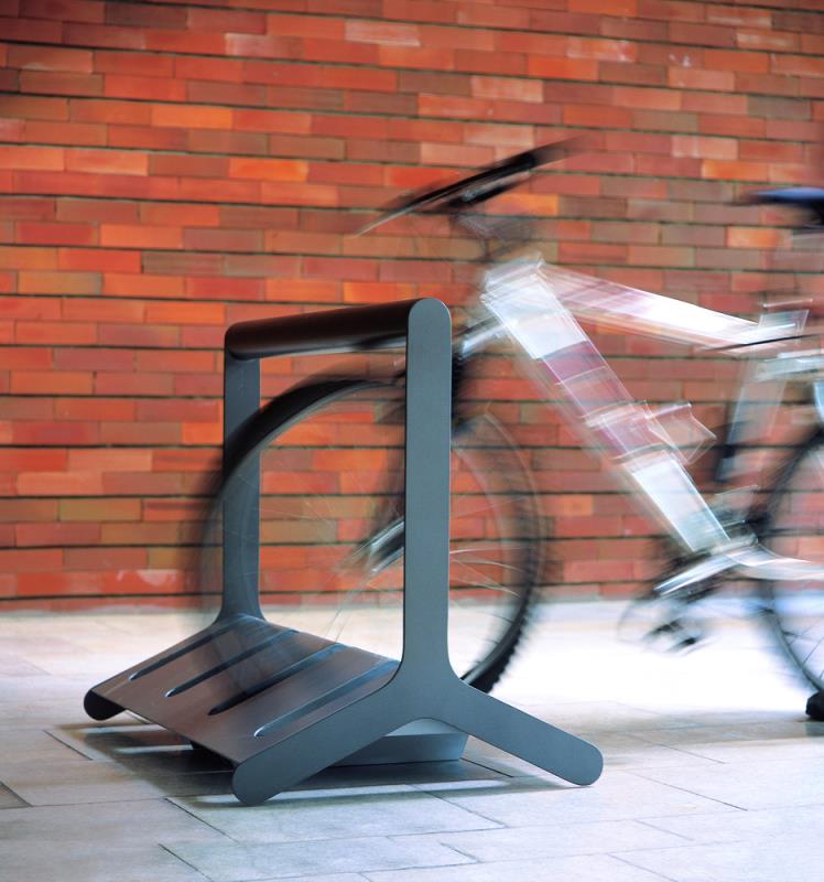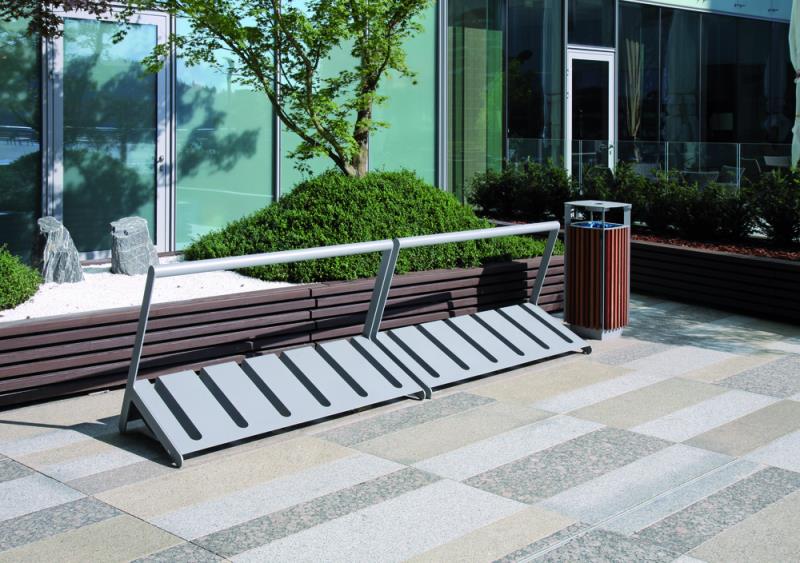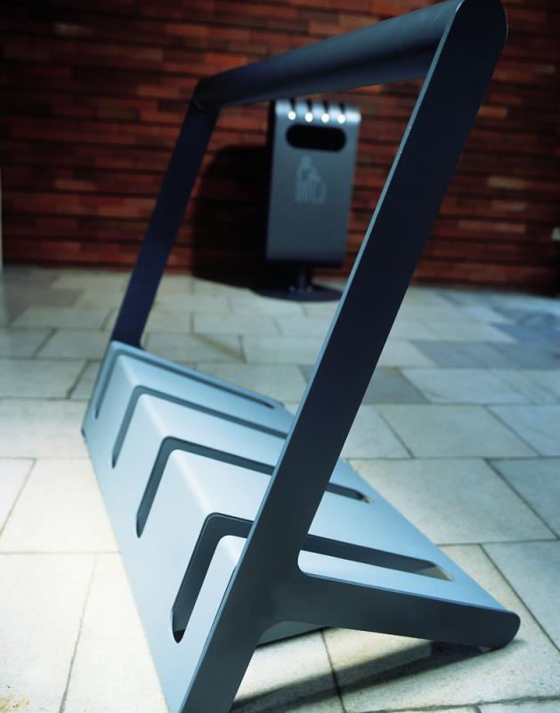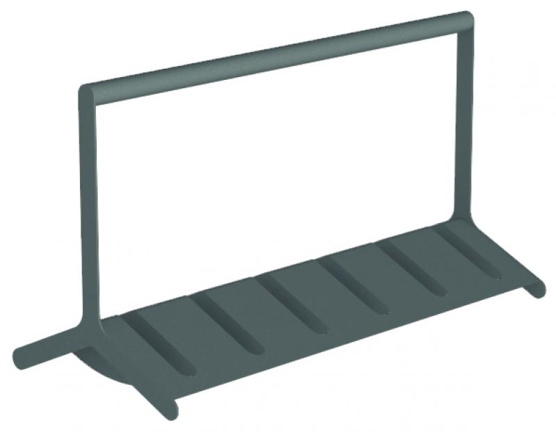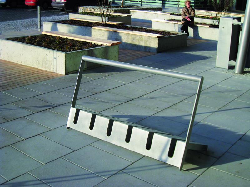 Stojalo za 6 koles pri dvostranskem parkiranju. Iz jekelne pločevine.