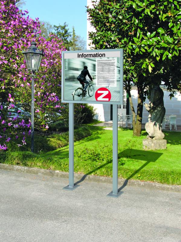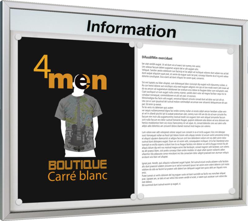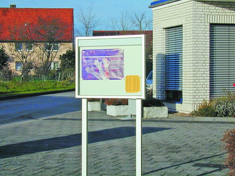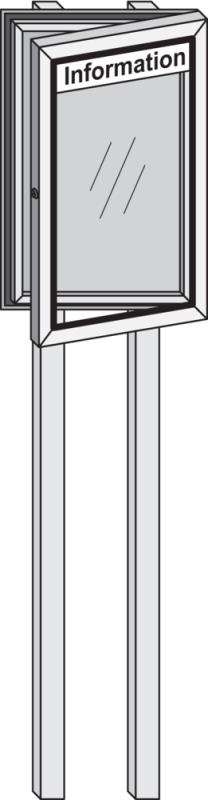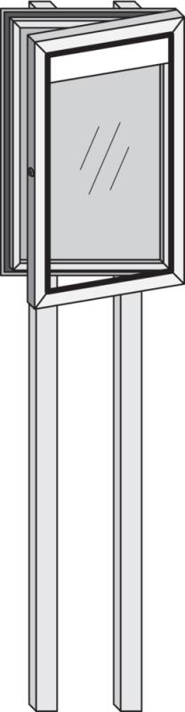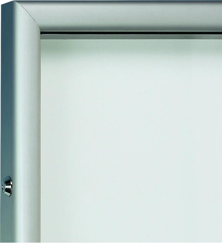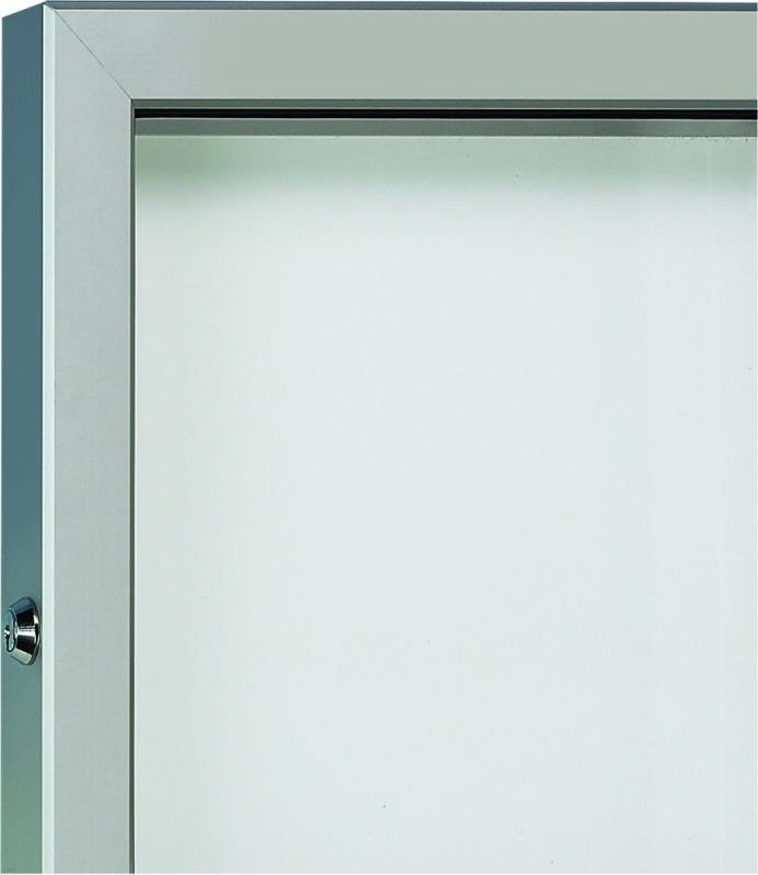 Enostranska aluminijasta vitrina z vrtljivimi vrati, dobava vsebuje napisno letev, brez napisa in centralno kljucavnico z dvema kljucema.